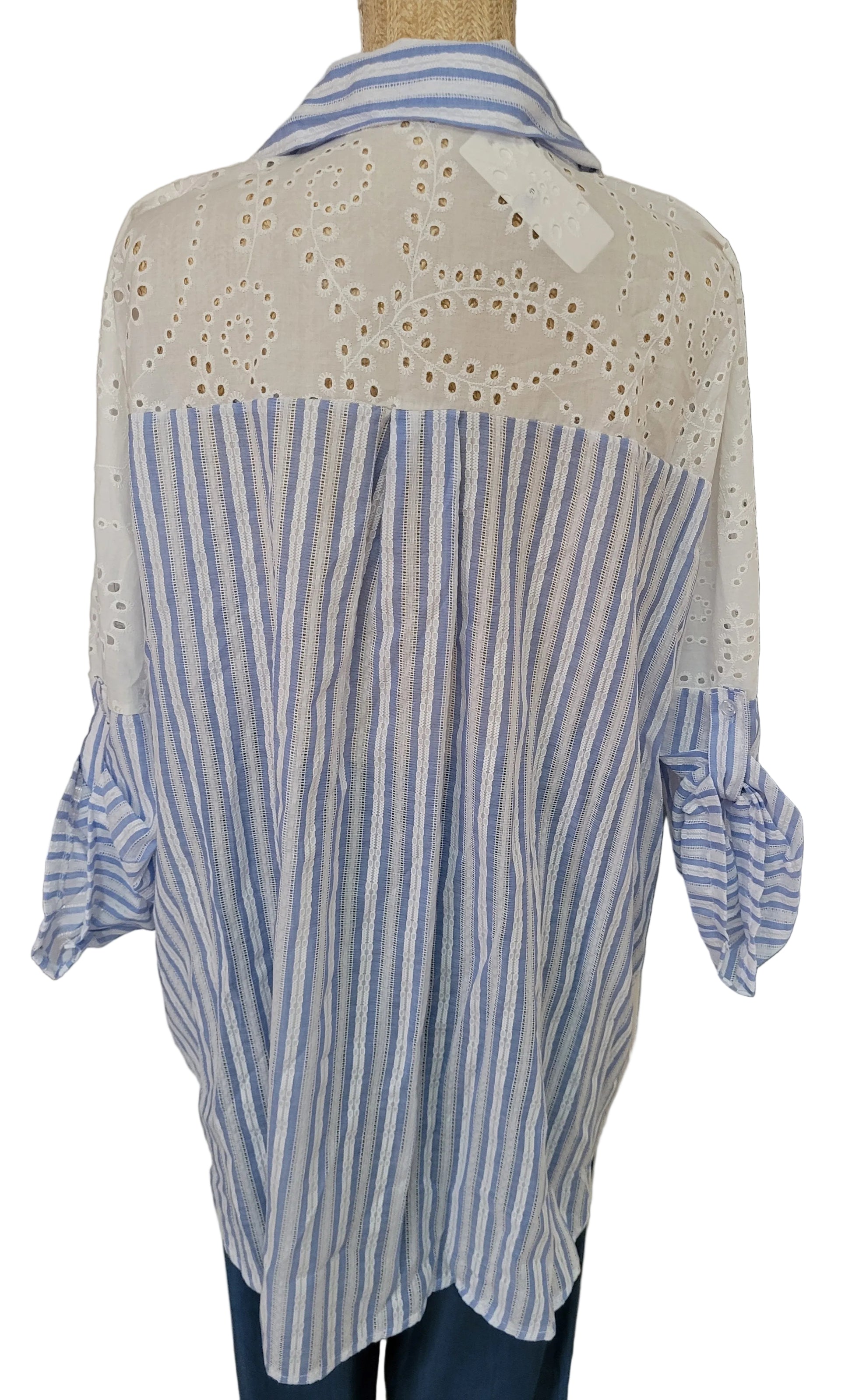 Chemise élégante en coton élasthanne, brodée, parfaite pour le printemps/été, conçue pour sublimer les silhouettes généreuses.